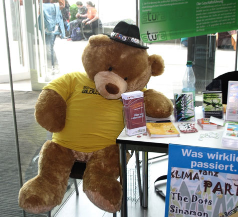 Der behäbig vor sich hin schnarchende Bär zeichnet ein realistisches Bild der aktuellen Situation an der TU Dresden ... da "brennt" nüschd mehr. (aufgenommen am Uni-Tag am 29.05.)